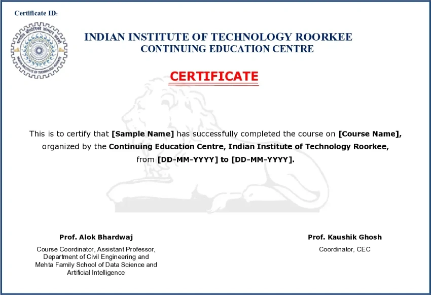 The programme is designed and delivered by esteemed IIT Roorkee faculty from the Department of Computer Science & Engineering and the Centre for Continuing Education (CEC), ensuring academic rigour backed by practical insights from the industry.